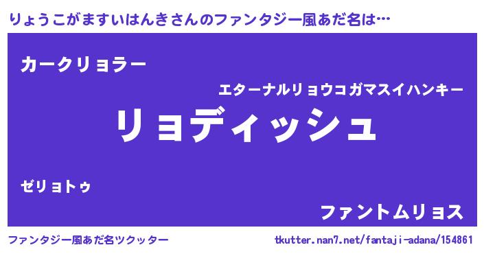 | 意味不明あだ名 | 『永久保存りょうこがますいはんき』 |