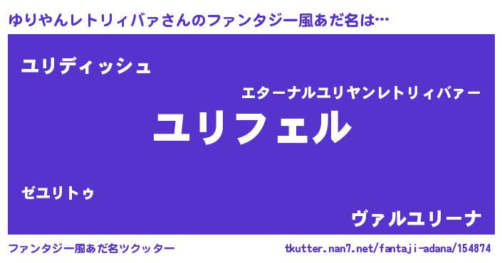 | 男性向けラノベタイトル風あだ名 | 『ユリヤンレトリィバァアートオンライン』 |