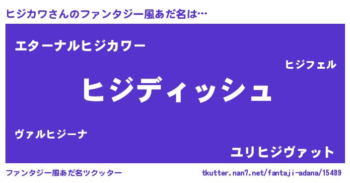 | 男性向けラノベタイトル風あだ名 | 『ヒジカワという概念が存在しない退屈な世界 』 |