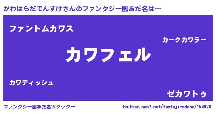 | ヒーロー風カッコイイあだ名 | 『スーパーカワハラダデンスケ』 |