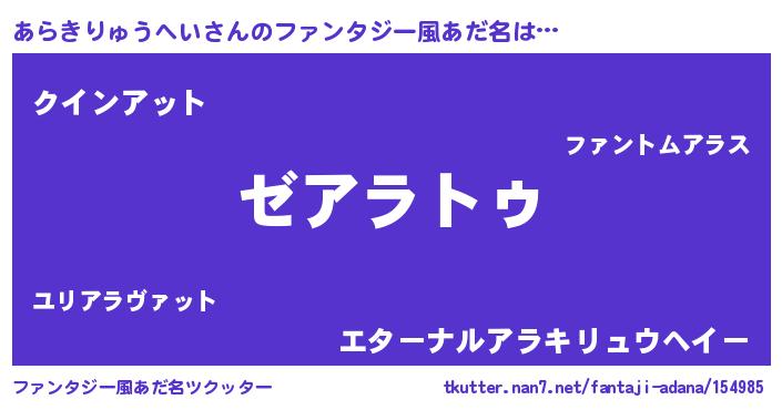 | 意味不明あだ名 | 『自称あらきりゅうへい』 |