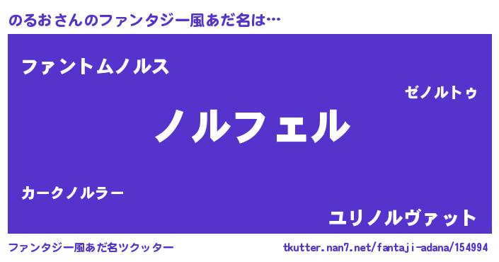 | 男性向けラノベタイトル風あだ名 | 『のるおの憂鬱』 |