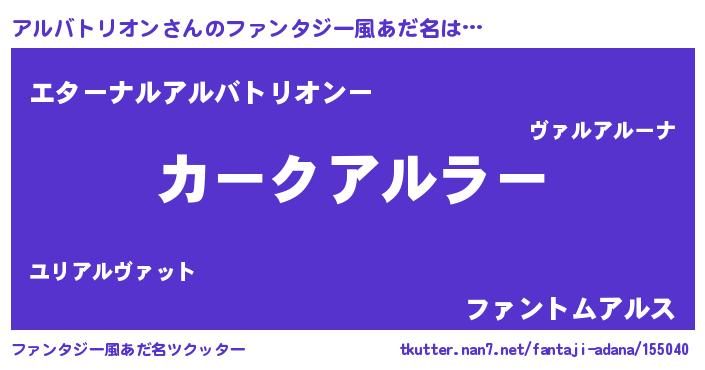| 意味不明あだ名 | 『アルバトリオンフォーエバー』 |