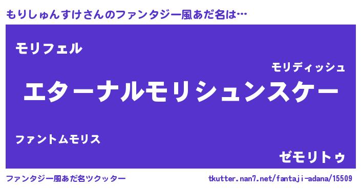 | 男性向けラノベタイトル風あだ名 | 『うちの娘の為ならば、俺はもしかしたらもりしゅんすけも倒せるかもしれない。』 |