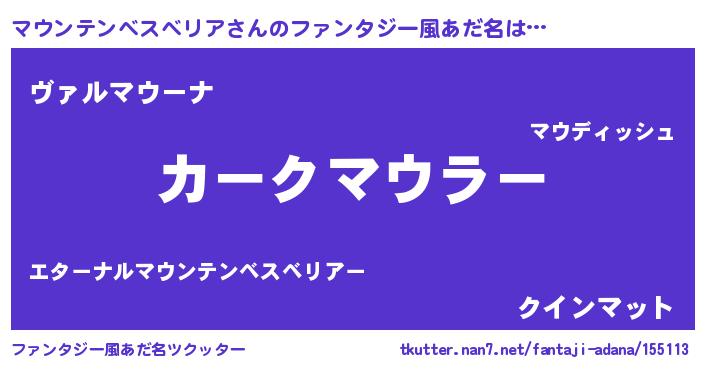 | 意味不明あだ名 | 『住所不定無職マウンテンベスベリア(89歳)』 |