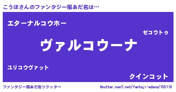 | 男性向けラノベタイトル風あだ名 | 『この素晴らしい世界にこうほを!』 |