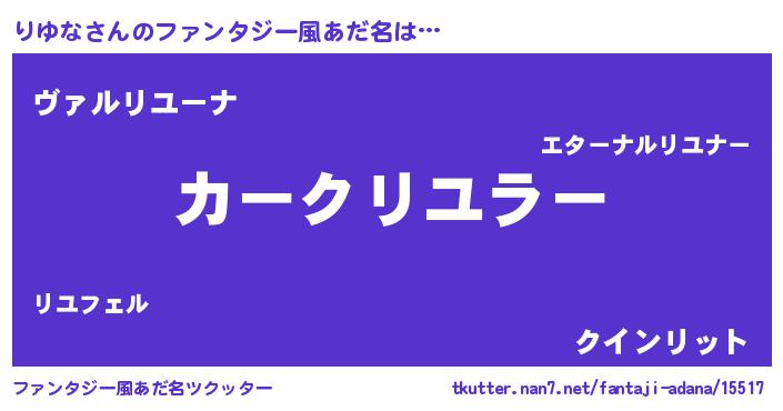 | 欧米人風あだ名 | 『りゆな・ステッグマイヤー』 |