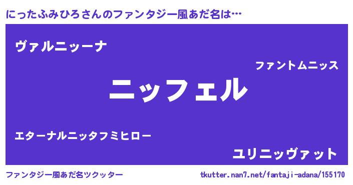 | 男性向けラノベタイトル風あだ名 | 『ニッタフミヒロアートオンライン』 |