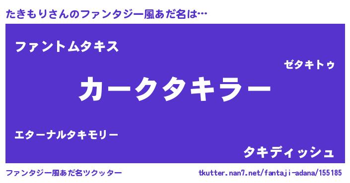 | 男性向けラノベタイトル風あだ名 | 『たきもりに滅ぼされるだけの簡単なお仕事です』 |