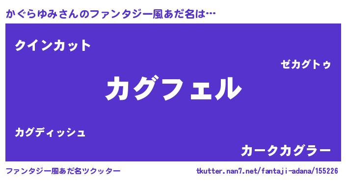 | 胡散臭い通販商品みたいなあだ名 | 『億万長者になれる水晶球…その名も「かぐらゆみ」』 |