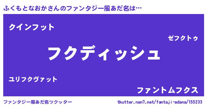 | ヒーロー風カッコイイあだ名 | 『ネオフクモトナオカ』『炎刃騎士フク』 |