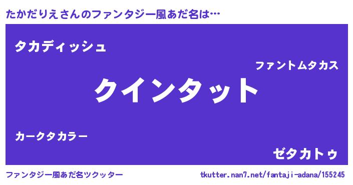 | ヘコむあだ名 | 『たかだりえ(笑)』『たかを』 |
