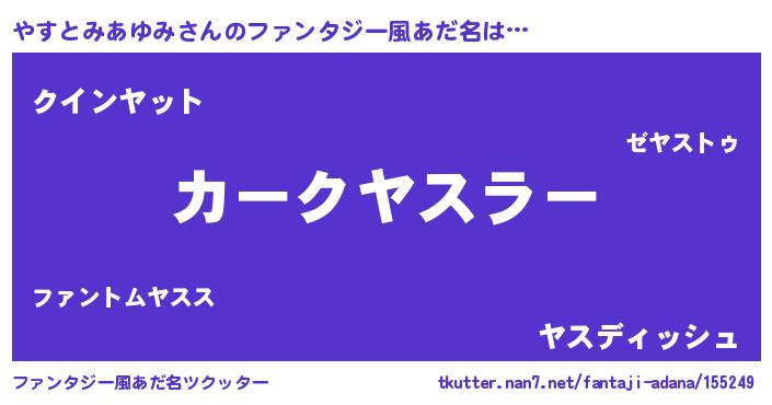 | ヘコむあだ名 | 『やすとみあゆみ(爆)』『やすっぺ』 |