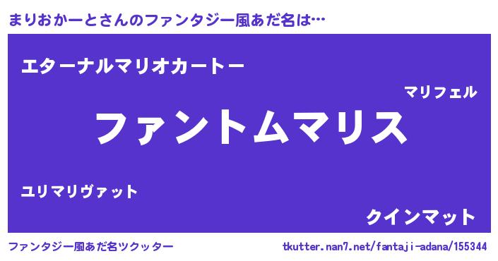 | 男性向けラノベタイトル風あだ名 | 『ダンジョンにまりおかーとを求めるのは間違っているだろうか』 |
