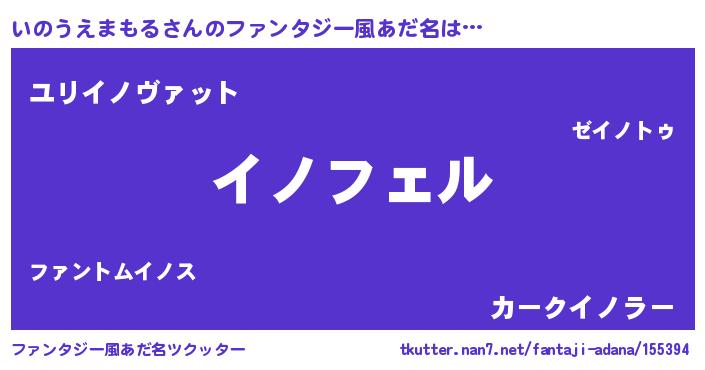 | 女子向けラノベタイトル風あだ名 | 『(仮)いのうえまもるのやんごとなき事情』 |