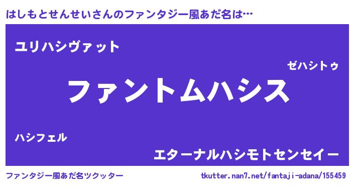 | 男性向けラノベタイトル風あだ名 | 『はしもとせんせいの嫁は女の子じゃないと思った?』 |