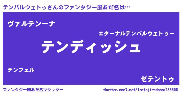 | 意味不明あだ名 | 『永久保存テンバルウェトゥ』 |