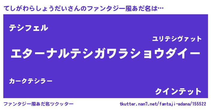 | 意味不明あだ名 | 『てしがわらしょうだいフォーエバー』 |