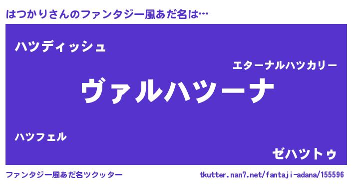 | 男性向けラノベタイトル風あだ名 | 『魔弾の王とはつかり』 |