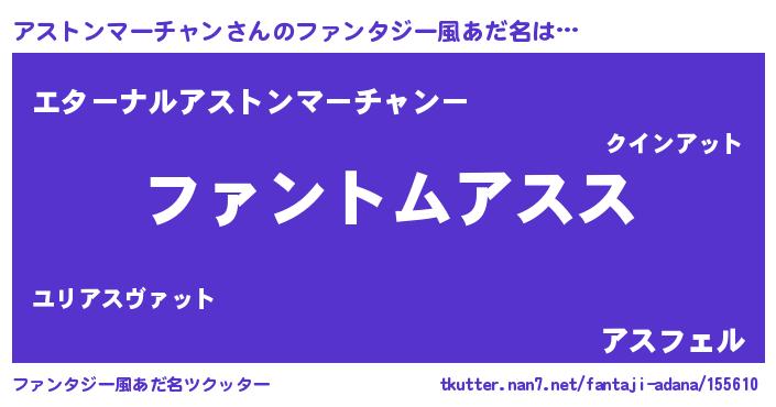 | 意味不明あだ名 | 『とにかく怪しいアストンマーチャン』 |