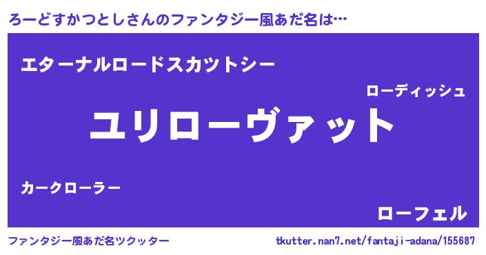 | 男性向けラノベタイトル風あだ名 | 『ろーどすかつとしに滅ぼされるだけの簡単なお仕事です』 |