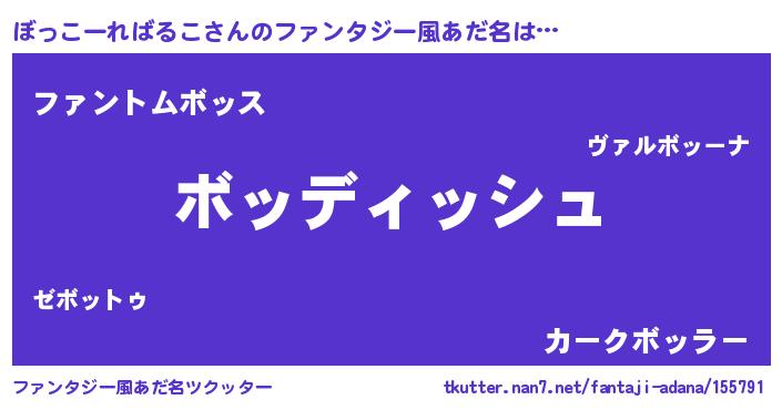 | 男性向けラノベタイトル風あだ名 | 『ぼっこーればるこという概念が存在しない退屈な世界 』 |