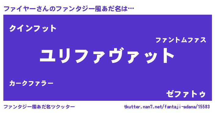 | ヒーロー風カッコイイあだ名 | 『慈愛の使者ファイヤー』『炎刃騎士ファ』 |