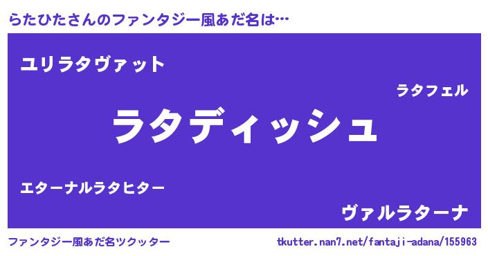 | ヘコむあだ名 | 『らたひた(小並感)』『らたにゅー』 |