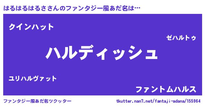 | 男性向けラノベタイトル風あだ名 | 『はるはるはるさという概念が存在しない退屈な世界 』 |