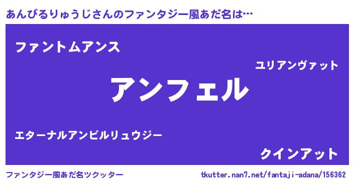 | 男性向けラノベタイトル風あだ名 | 『アンビルリュウジアートオンライン』 |
