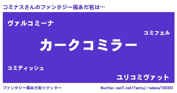 | 意味不明あだ名 | 『住所不定無職コミナス(10歳)』 |