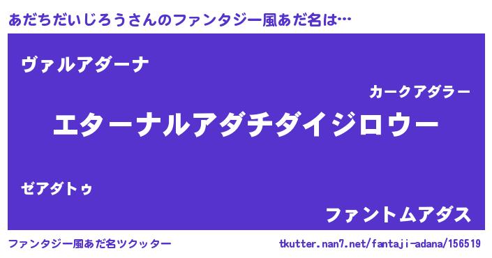 | 女子向けラノベタイトル風あだ名 | 『あだちだいじろうの雑貨屋さん』 |