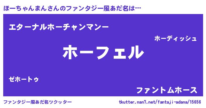 | 男性向けラノベタイトル風あだ名 | 『ほーちゃんまんの憂鬱』 |