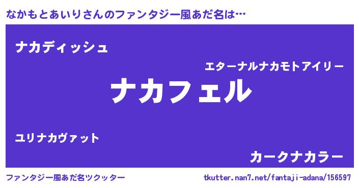 | ヘコむあだ名 | 『なかっふぃ~』『なかもとあいり(震え声)』 |