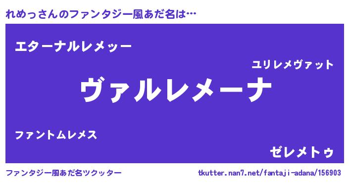 | 意味不明あだ名 | 『住所不定無職れめっ(12歳)』『自称れめっ』 |
