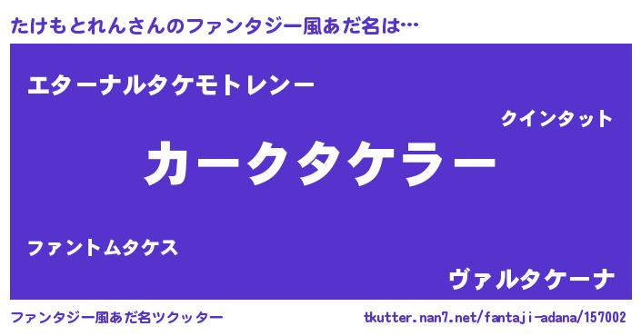 | ポケモン風あだ名 | 『メロタッケ』『タケモダネ』 |