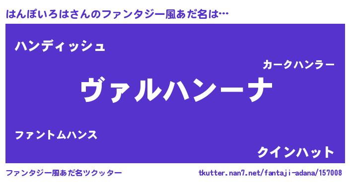 | 男性向けラノベタイトル風あだ名 | 『この素晴らしい世界にはんぽいろはを!』 |