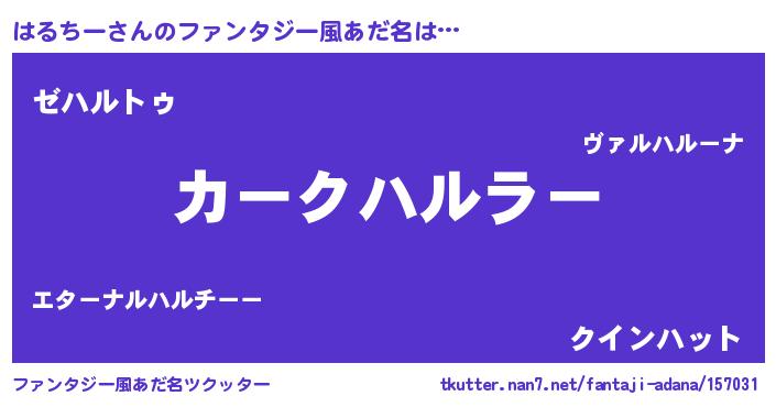 | 欧米人風あだ名 | 『はるちー・ステッグマイヤー』 |