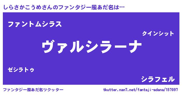 | 男性向けラノベタイトル風あだ名 | 『この素晴らしい世界にしらさかこうめを!』 |