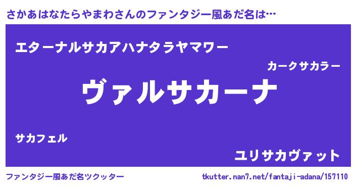 | 伝説のあだ名 | 『秘められし陰陽師さかあはなたらやまわ』 |