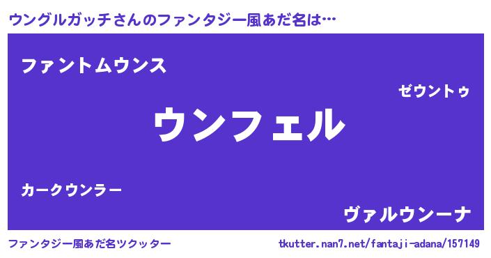 | 男性向けラノベタイトル風あだ名 | 『ウングルガッチに滅ぼされるだけの簡単なお仕事です』 |