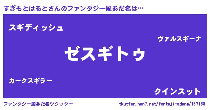 | ヒーロー風カッコイイあだ名 | 『最強戦士スギモトハルト』 |