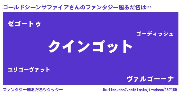 | 男性向けラノベタイトル風あだ名 | 『おまえをオタクにしてやるから、俺をゴールドシーンサファイアにしてくれ! 』 |