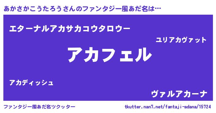| 女子向けラノベタイトル風あだ名 | 『(仮)あかさかこうたろうのやんごとなき事情』 |