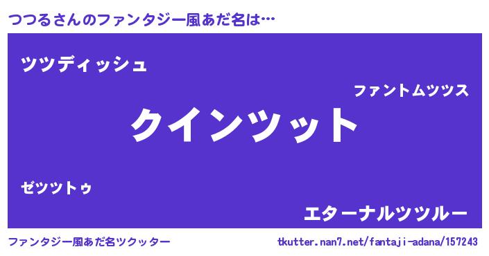 | ヒーロー風カッコイイあだ名 | 『慈愛の使者つつる』『ネオツツル』 |