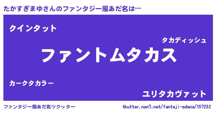 | 男性向けラノベタイトル風あだ名 | 『たかすぎまゆの嫁は女の子じゃないと思った?』 |