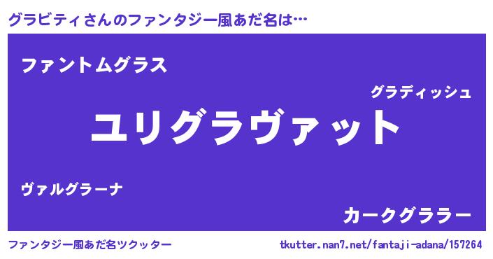 | 男性向けラノベタイトル風あだ名 | 『グラビティ~年齢イコール彼女いない歴の魔法使い~』 |