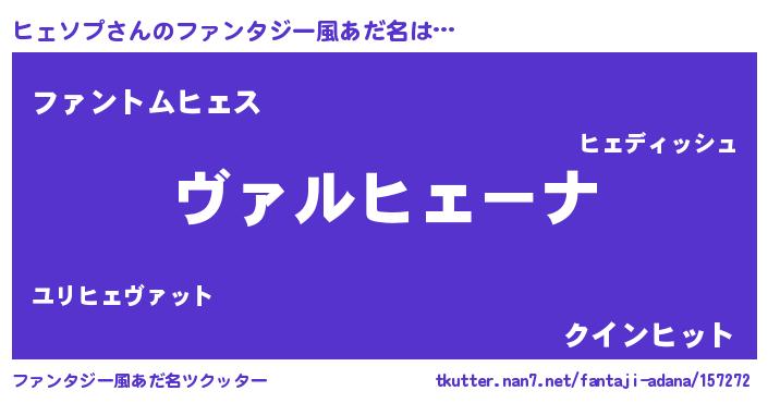 | 男性向けラノベタイトル風あだ名 | 『魔弾の王とヒェソプ』 |