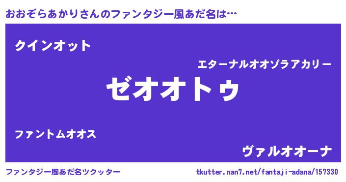 | 男性向けラノベタイトル風あだ名 | 『Re:おおぞらあかりから始める異世界生活』 |