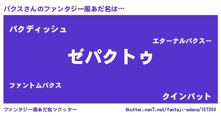 | 意味不明あだ名 | 『自称パクス』『永久保存パクス』 |